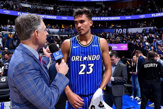本场比赛中,魔术的先发锋线新星特里斯坦-达-席尔瓦(Tristan Da Silva)的表现还是相当稳定的。达-席尔瓦全场出场28分52秒,投篮13中6,三分线外7中3,得到了15分4篮板2助攻1抢断的数据,还有2次失误,正负值为+6。达-席尔瓦在比赛中的表现也能够用攻守兼备来形容,他的进攻效率稳定,他在三分线外的效率相当不错,他在进攻端能够帮助球队拉开空间,能够起到全面的作用。除此之外,达-席尔瓦在防守端的表现也算是中规中矩的水平,也没有出现什么问题。总体来看,达-席尔瓦也是很好地完成了自己在场上的任务,成功扮演了一名合格的3D锋线的角色,他也为球队的胜利做出了自己的贡献。