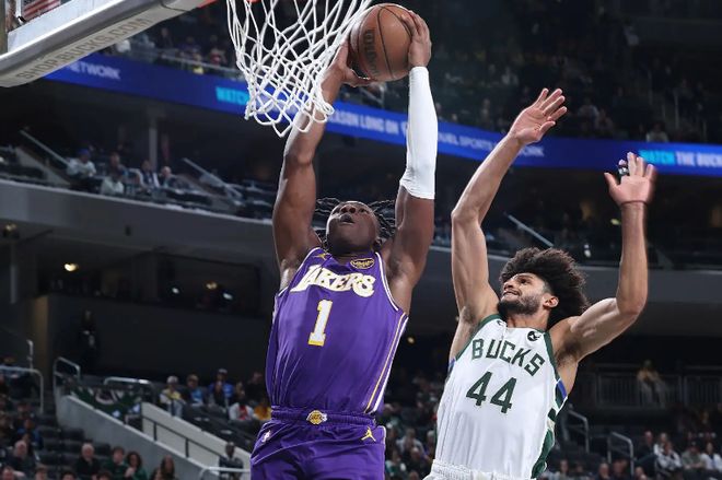 尽管投篮手感仍没有恢复,但湖人侧翼新星在攻防两端都起到了效果