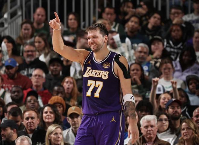 勒布朗·詹姆斯缺阵也无妨,湖人卢卡·东契奇对阵雄鹿展现统治力