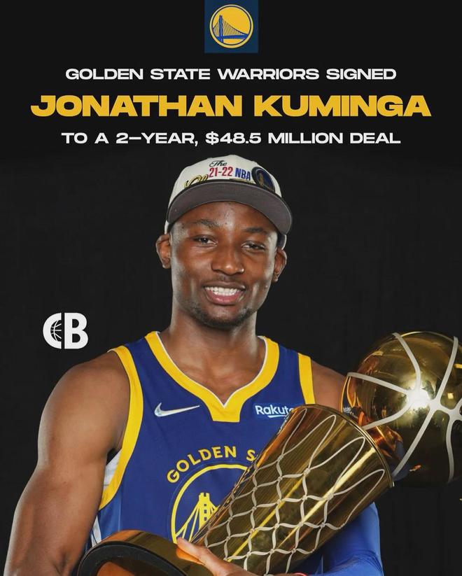 北京时间10月1日,NBA名记Shams报道,库明加的经纪人阿隆-特纳透露,库明加同意与勇士签下2年4850万美元的续约合同,第二年球队选项。根据劳资协议,库明加在2026年1月15日之前无法被交易,至少还能在勇士打半个赛季。