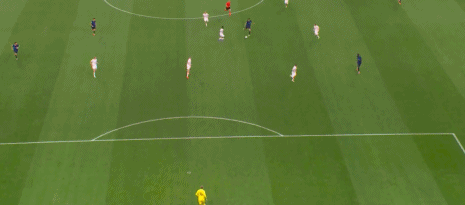 第51分钟,库尔图瓦后场大脚给到前场,姆巴佩单刀机会挑射破门。